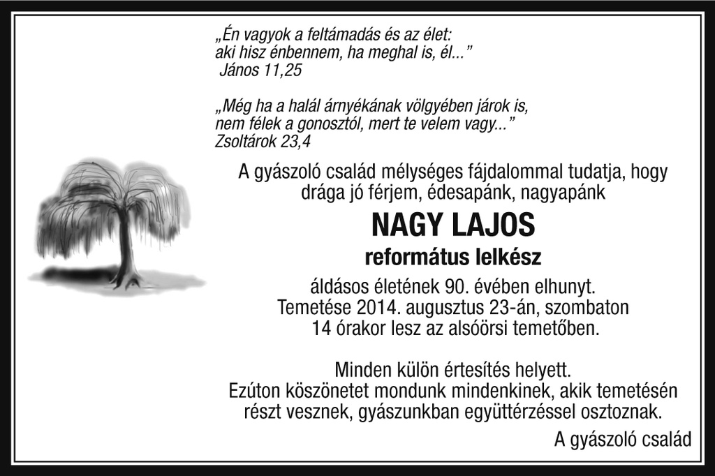 Nagy Lajos lelkipásztor testvérünk koporsójánál Pál apostol testamentuma, és egyben hitvallása vigasztal és szólít meg bennünket.