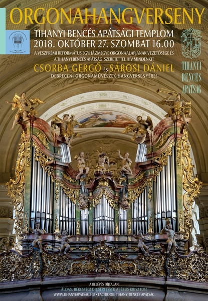 A Veszprémi Református Egyházmegye Orgonalapjának és a Tihanyi Bencés Apátságnak közös szervezésében, 2018. október 27-én du. 16 órai kezdettel adnak hangversenyt: