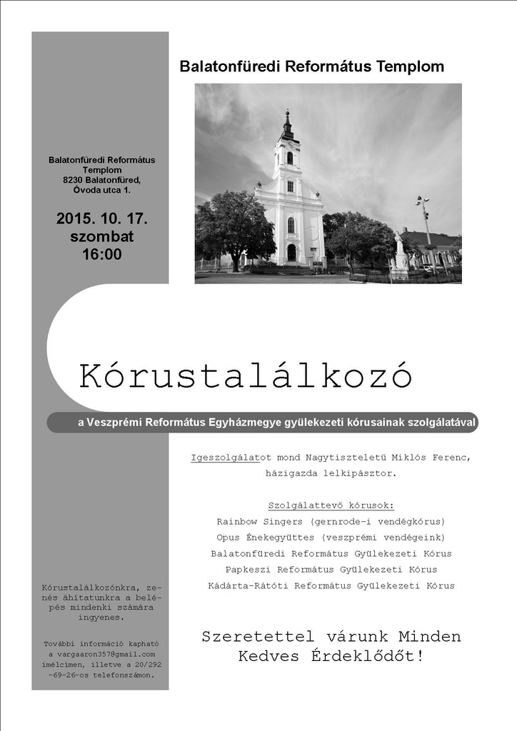 Kórustalálkozónkra, zenés áhítatunkra a belépés mindenki számára ingyenes.