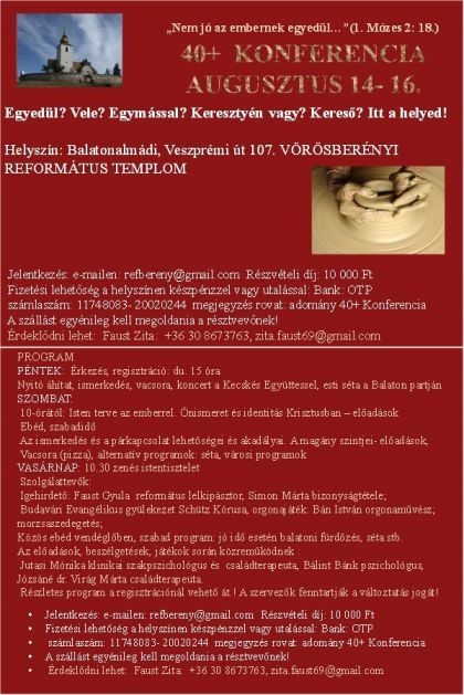 40+ konferencia augusztus 14-16-ig.