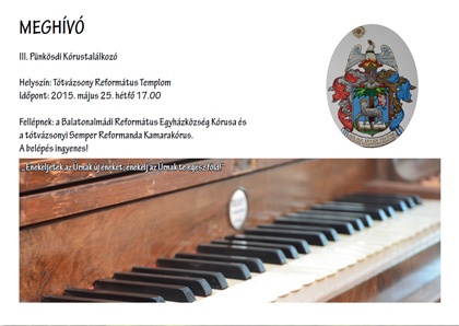 Fellépnek: a Balatonalmádi Református Egyházközség Kórusa és a tótvázsonyi Semper Reformanda Kamarakórus.