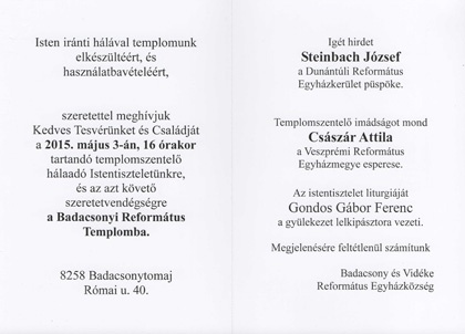 A Köveskáli Református Egyházközség életére és a zenei fesztiválra Isten áldását kérjük.
