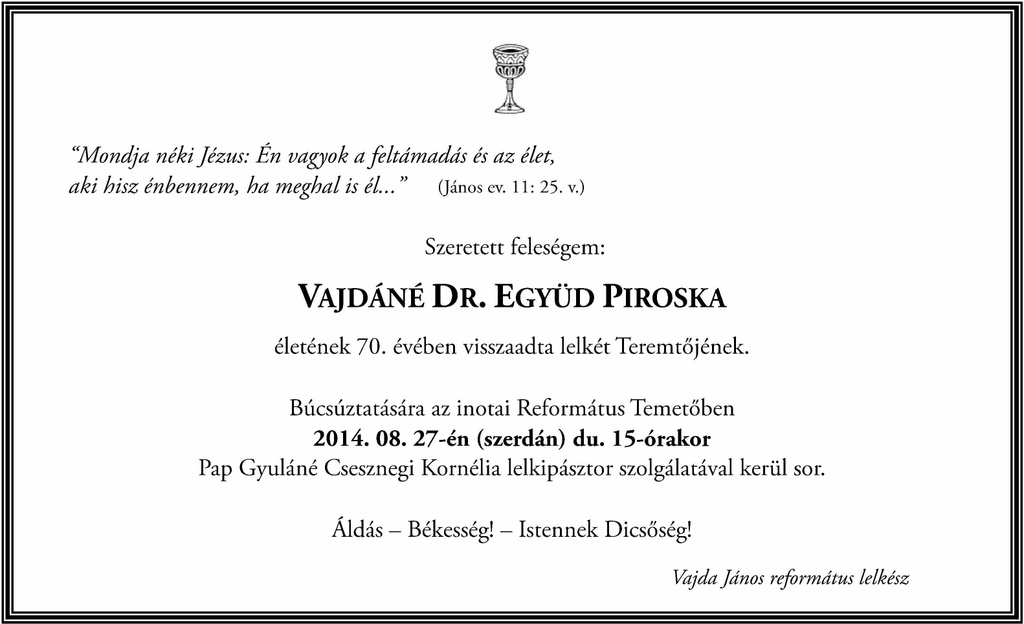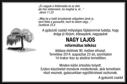 Nagy Lajos lelkipásztor testvérünk koporsójánál Pál apostol testamentuma, és egyben hitvallása vigasztal és szólít meg bennünket.