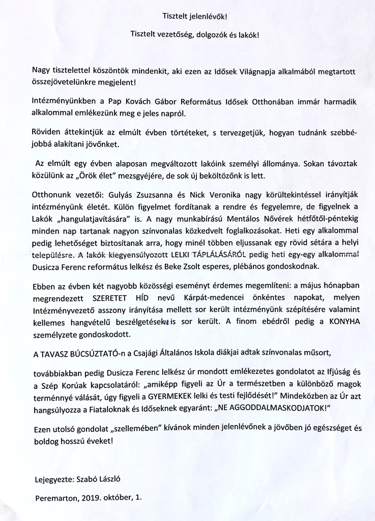 Tisztelettel közöljük egyik kedves Lakónk: Szábó László ünnepi beszédét.