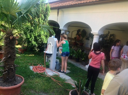 Csurgó után Berzencére buszoztunk, ahol a dombok között három katolikus templom is található. A Keresztelő János tiszteletére 1490-ben épült templomban a helyi idegenvezetés után misét is tartott Beke Zsolt plébános úr. Innen már nem messze Horvátország, ahová átkirándultunk és Molve és Szentgyörgyvár felkeresése után Ludbregbe érkeztünk, ahol már a 4. században püspökség volt. Ma ez az egyik leglátogatottabb római katolikus zarándokhely. A Szent vér ereklyét évente tízezrek keresik fel. A transzszubszanciáció tanának zarándokhelyén ma is működő kolostor van, amelynek udvarán katolikusoknak és reformátusoknak egyaránt jól esett kicsit hűteni magunkat az udvar árnyas fái alatt.