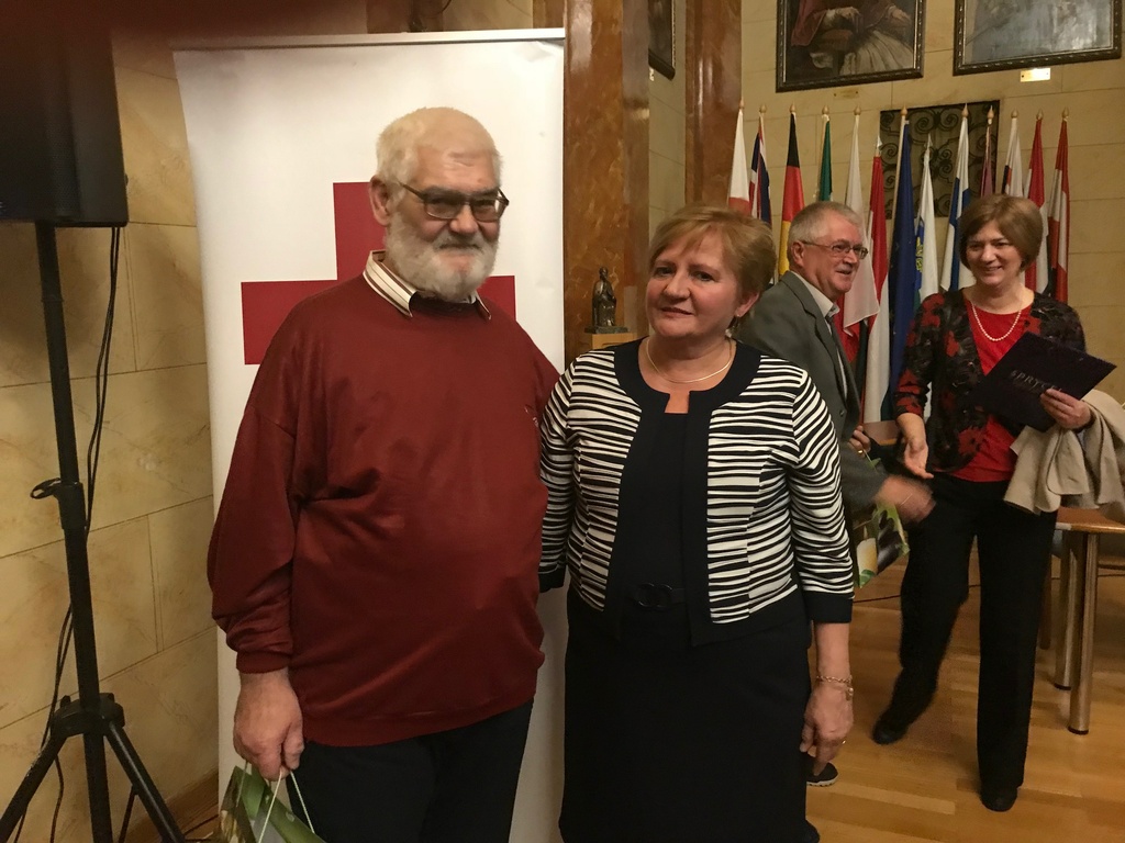 Református Idős Otthonunk egyik lakója: Szabó László, akit a Magyar Vöröskereszt köszöntött a Véradók napján. Lakónk 175 alkalommal adott vért, és 62-szer vett részt plazmaferezisben.
